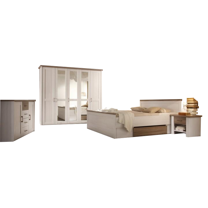 | Hálószobakomplett, mandulafenyő fehér/sonoma tölgy trufla, LUMERA | 678 900 Ft |