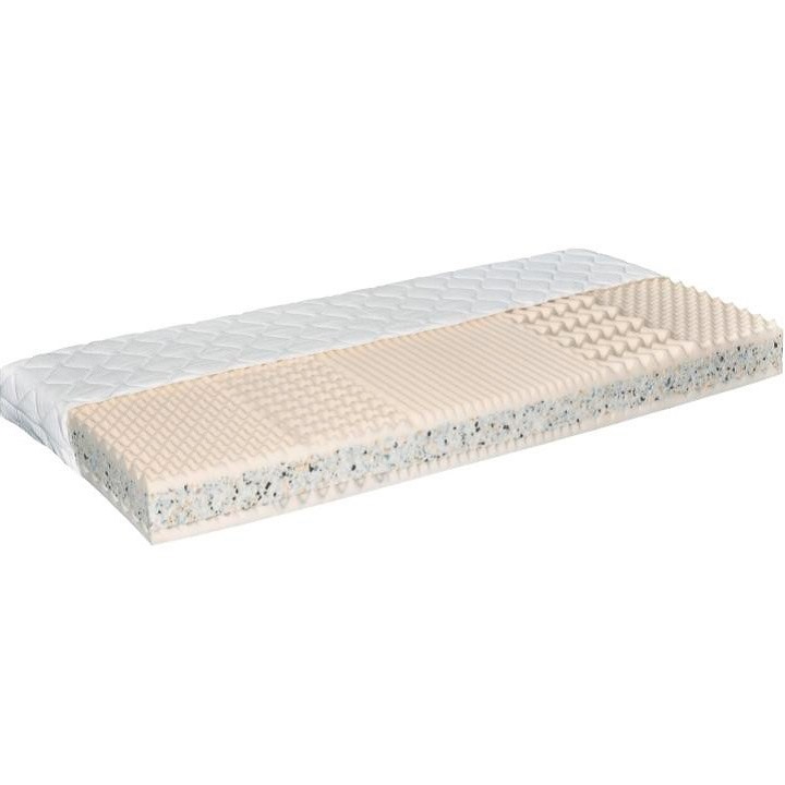 Szendvics matrac Cati PUR hab és RE (heterogén) hab kombinációja, 5 anatómiai zónával, a matrac különleges kialakítása jó szellőzést biztosít, kétoldalas, használható fix és állítható ágy