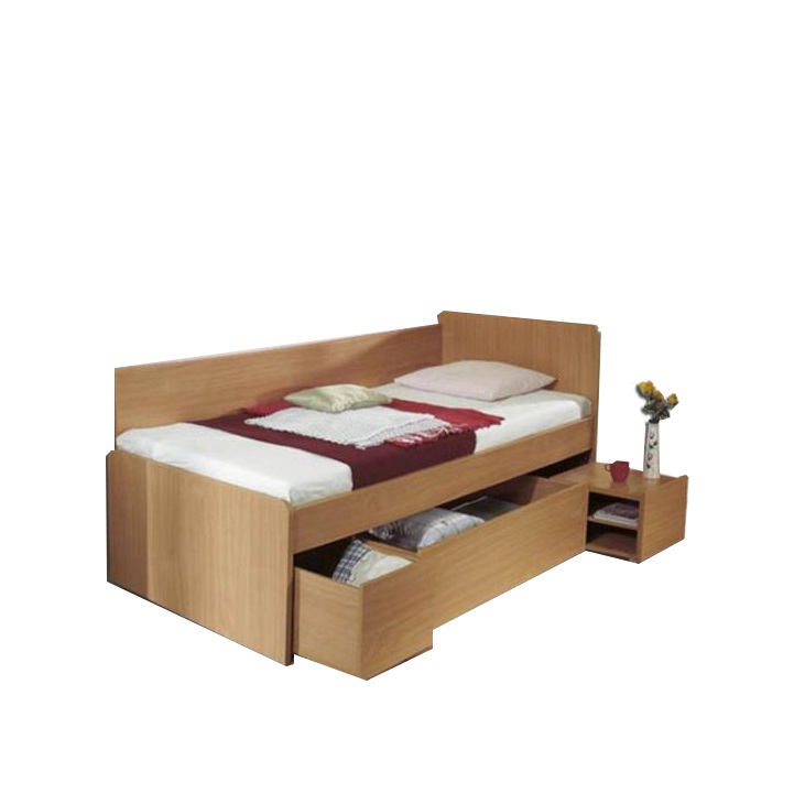 Univerzális ágy ágyneműtartóval, mérete (Szé/Mé/Ma): 90x200 cm ?97x205,6x100 cm, színváltozat: bükkfa, az ágy része: kihúzható éjjeliasztal.Vásárolható hozzá ágyrács és matrac (90x200) a