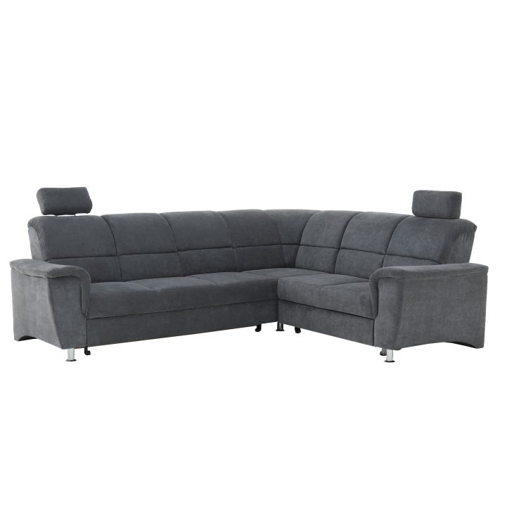 Kárpitozott, kinyitható ülőgarnitúra, jobbos, SANTIAGO Anyag: szövet színváltozat: Matrix 17 szürke krómozott fémlábak. Állítható fejtámlák.