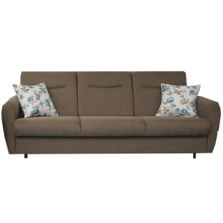 Kanapé ágyfunkcióval és ágyneműtartóval, 2 párnával. Szín: Alova barna. Méret (Ho/Szé/Ma): 193x74x70 cm. Fekvőfelület (Ho/Szé): 193x149 cm. Ülőmagasság: 41 cm, ülőmélység: 71 cm.