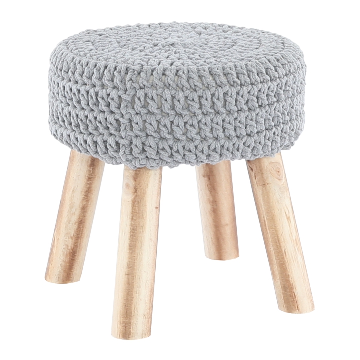 Ülőke fa lábakkal NAIDA Anyag: pamut/ fa Szín: szürke Méretek(SzéxMéxMa): 28x28x40 cm Ülésmagasság : 40 cm Lapszerelten csomagolva.