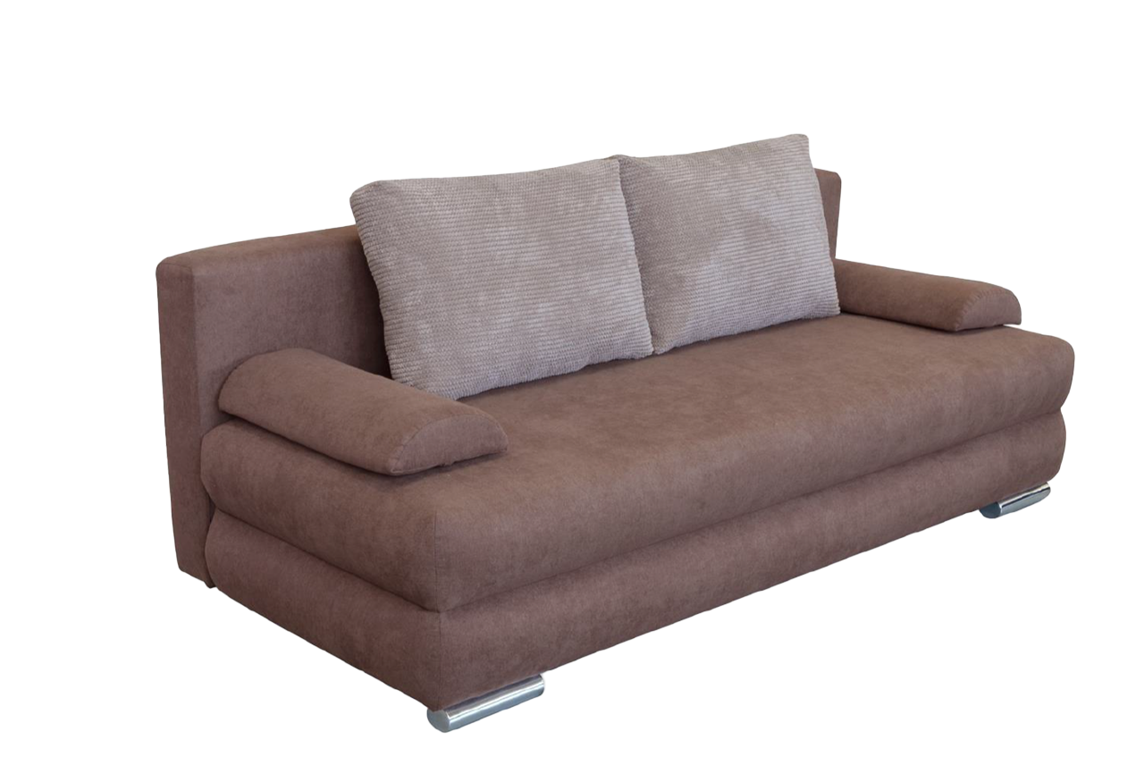 Kanapé ágyfunkcióval és ágyneműtartóval, 2 párnával. Szín: Alova barna. Méret (Ho/Szé/Ma): 193x74x70 cm. Fekvőfelület (Ho/Szé): 193x149 cm. Ülőmagasság: 41 cm, ülőmélység: 71 cm.