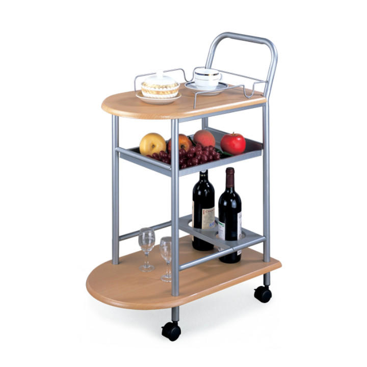 Zsúrasztal, bükk (MDF) + ezüst fém,(Szé/Mé/Ma): 60x38x84 cm. 2 kerék fékekkel. LIMA SERV.STOLIK BUK/STRIEB LY0863