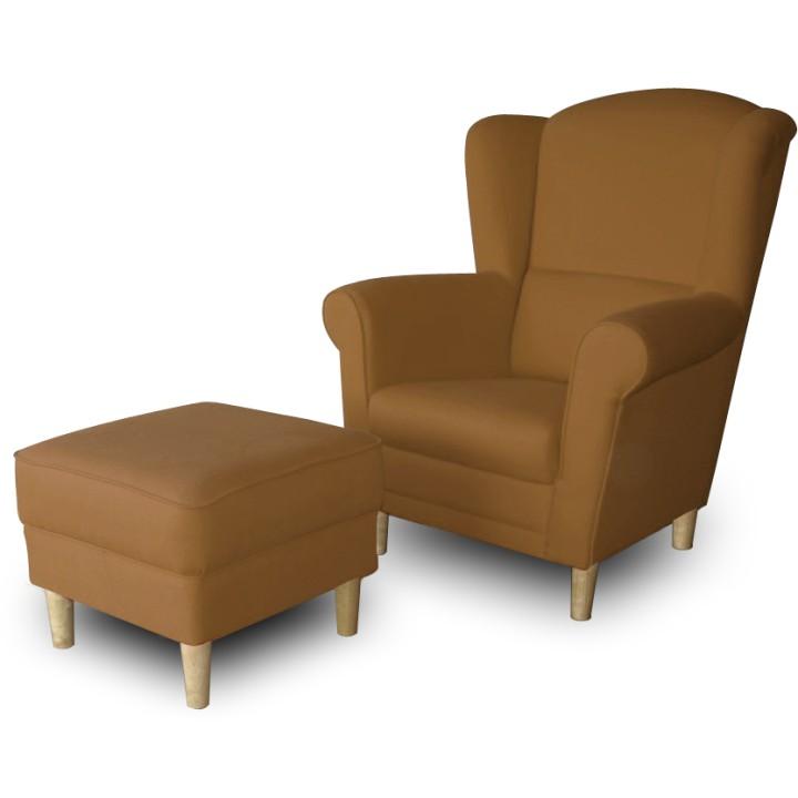 Kényelmes fotel + puff, változatok: alova piros és barna, bükkfa lábak, (Szé/Ma/Mé), fotel: 86x105x72 cm, ülőmagasság/ülőmélység: 42x48 cm,taburett: 53x42x53 cm, megrendelhető 6 színválto
