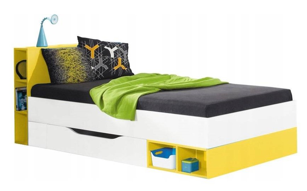 | Mobi fiókos ágykeret - Fehér-sárga | 200 cm | 90 cm | 80 cm | 113 000 Ft | MEB fehér és MEB türkiz | |