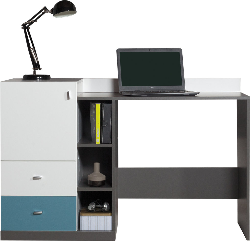 | Tablo íróasztal - Grafit - Fehér-kék | 130 cm | 55 cm | 84 cm | 60 800 Ft | MEB grafit és MEB erezett szürke |