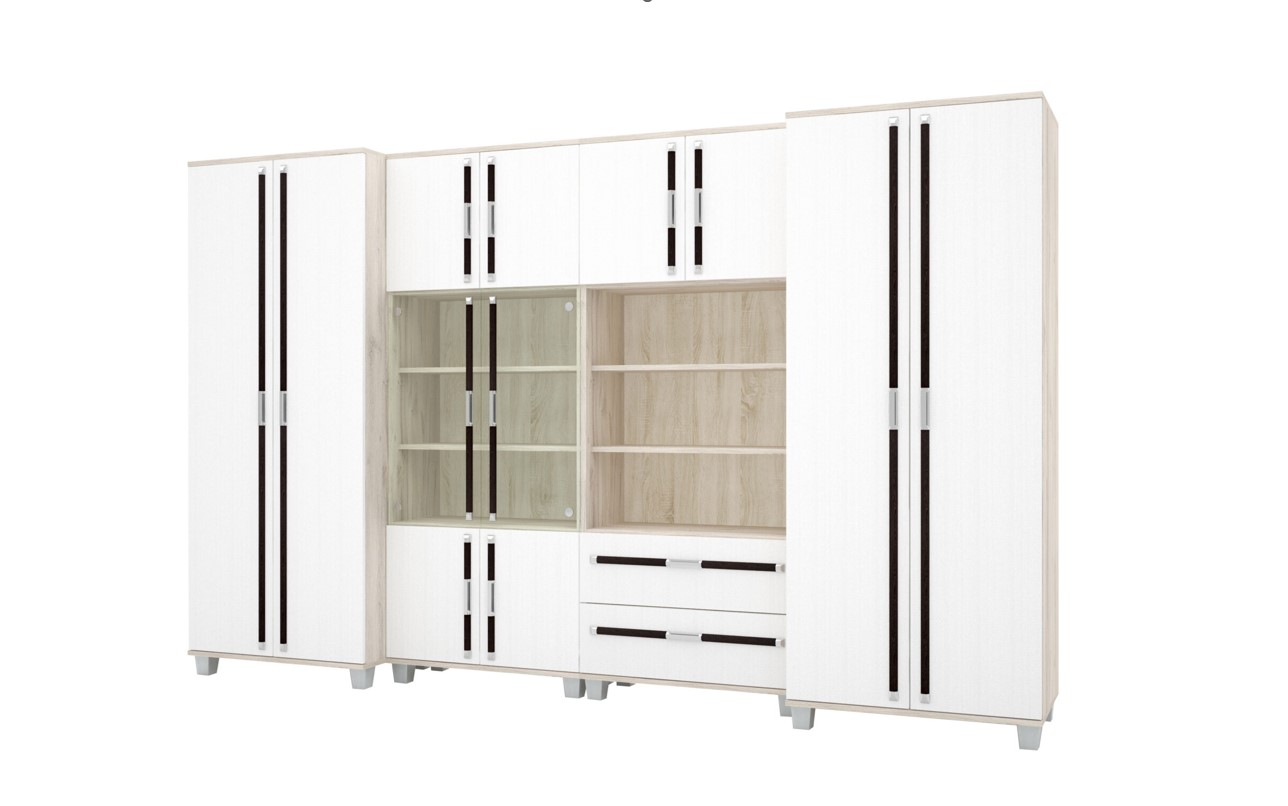 Basel nappali szekrénysorunk 265, 310, 355, 400 cm-es változatban kapható. Nero-bianco és nero-iszap tölgy színben érhető el.