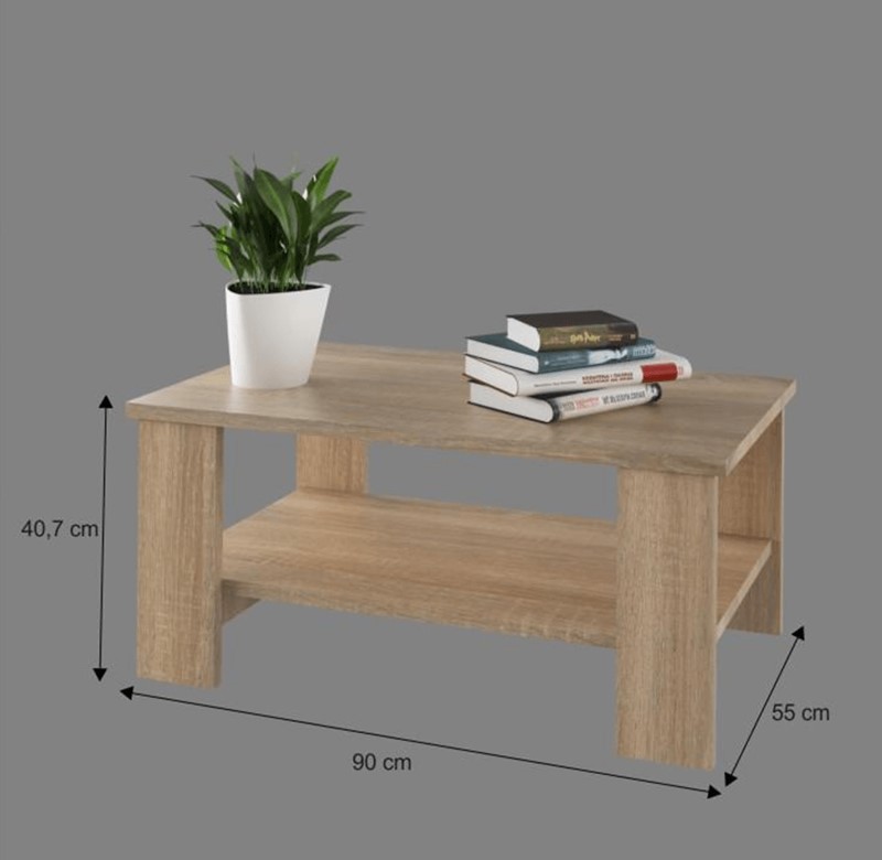Laminált DTD bútorlapból készült, fehér színváltozatban és ennek köszönhetően könnyedén beilleszthető bármelyik nappaliba. Alsó részén tárolóhellyel rendelkezik, amely tökéletes választás újságok, távirányítók, könyvek tárolására.