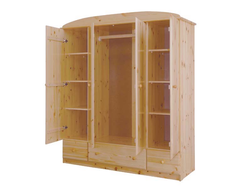 Óriási tárkapacitással rendelkező, kiváló statikájú fenyő nagyszekrény. A nagy méret és a fiókokkal kombinált elrendezés praktikus kihasználhatóságot tesznek lehetővé.