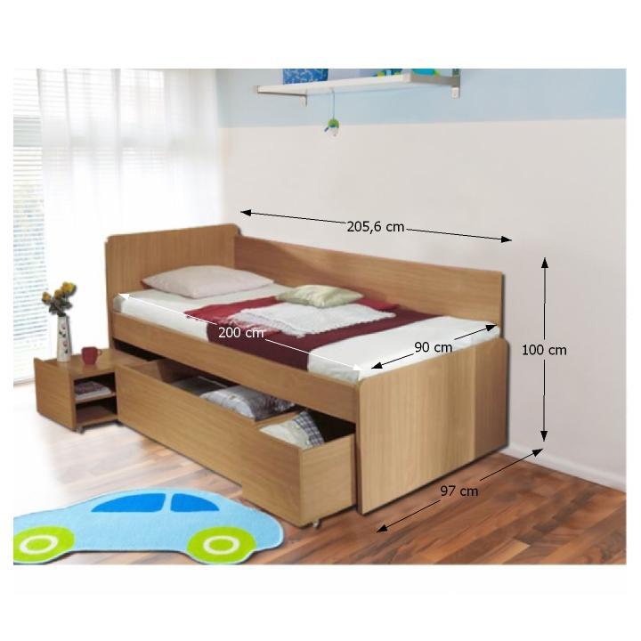 Univerzális ágy ágyneműtartóval, bükkfa, 90x200 cm, OTO