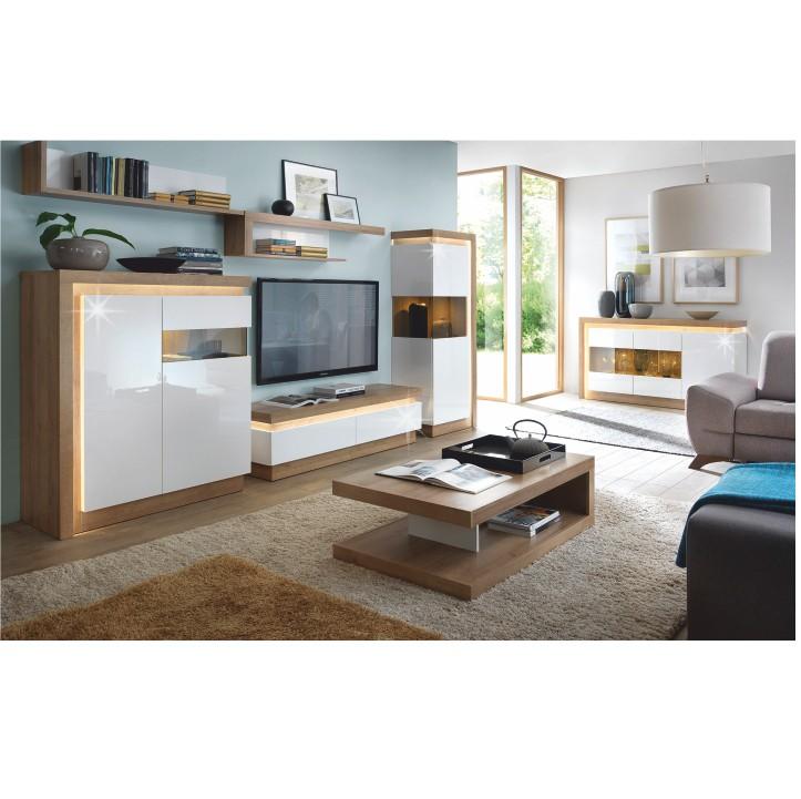 TV asztal 02, riviéra tölgy/HG fehér, LEONARDO