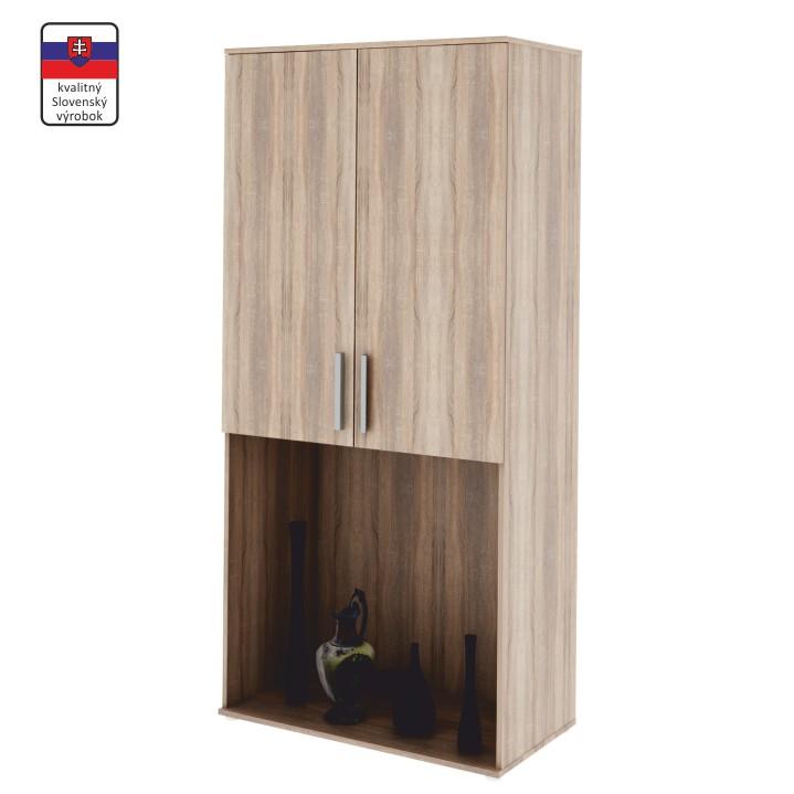 Univerzális, praktikus elemes rendszer, mely alkalmas a nappaliba, maximális rakodóhelyet biztosít minden helyiségben 240 cm-es magasságban. Anyag: laminált DTD, Színváltozat: sonoma tölgy, fém fogantyúk. TV szekrény mérete (SzéxMaxH): 90x190,8x47 cm. Az egyes elemek külön rendelhetőek. Hozzárendelhető polcok a TYP 2 vagy a TYP 5 szekrénybe (4db csomagolás) 87x1,6x45 cm-es méretben. Minőségi szlovák termék.